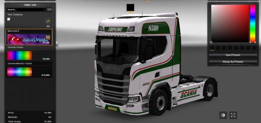 Powerliner skin v1.0 ETS2 Mods | 15 Dec, 2022 Powerliner skin v1.0 Powerliner skin Game: Euro truck simulator 2 Skin for MB Actros For v1.46 Credits: dreamcatcher This content was uploaded by website visitors. If you notice any mistake, please let us know. Download Tags: Game Euro You may also like... SCANIA R4 BY RJL POWERFUL LADY TRUCK SKIN 1.32 Truck Skins 4 Oct, 2018 JAN C. SWIJNENBURG SKIN FOR DAF XF EURO6 V1.0 TRUCK SKIN Truck Skins 10 Sep, 2019 VOLVO VNL 670 OZ RACE SKIN V1 TRUCK SKIN Truck Skins 16 Dec, 2016 Leave a Reply Cancel reply Your email address will not be published. Required fields are marked *Comment Name * Email * I have read and accepted the Privacy Policy * CategoriesETS2 Bus ETS2 Cars ETS2 Interiors ETS2 Map Objects ETS2 Maps ETS2 Other ETS2 Packs ETS2 Parts / Tuning ETS2 Sounds ETS2 Traffic ETS2 Trailer Skins ETS2 Trailers ETS2 Truck Skins ETS2 Trucks ETS2 Vehicles ETS2 Weather