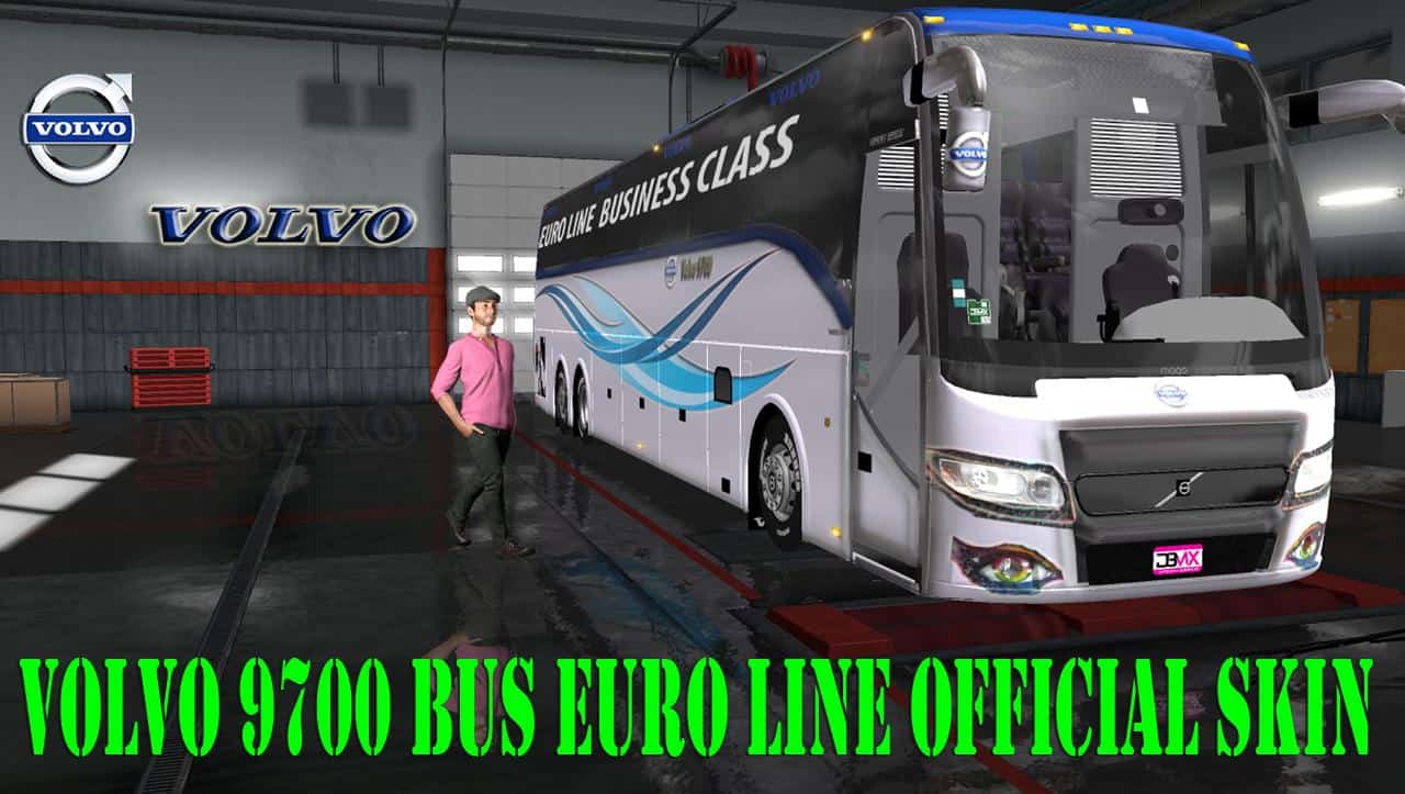 Volvo 9700 bus Euro line official Skin and bus+passenger for 1.32.x
