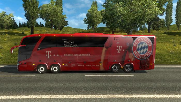 FC Bayern Munchen Bus for Euro truck Simulator 2. You can buy at the Scania store.