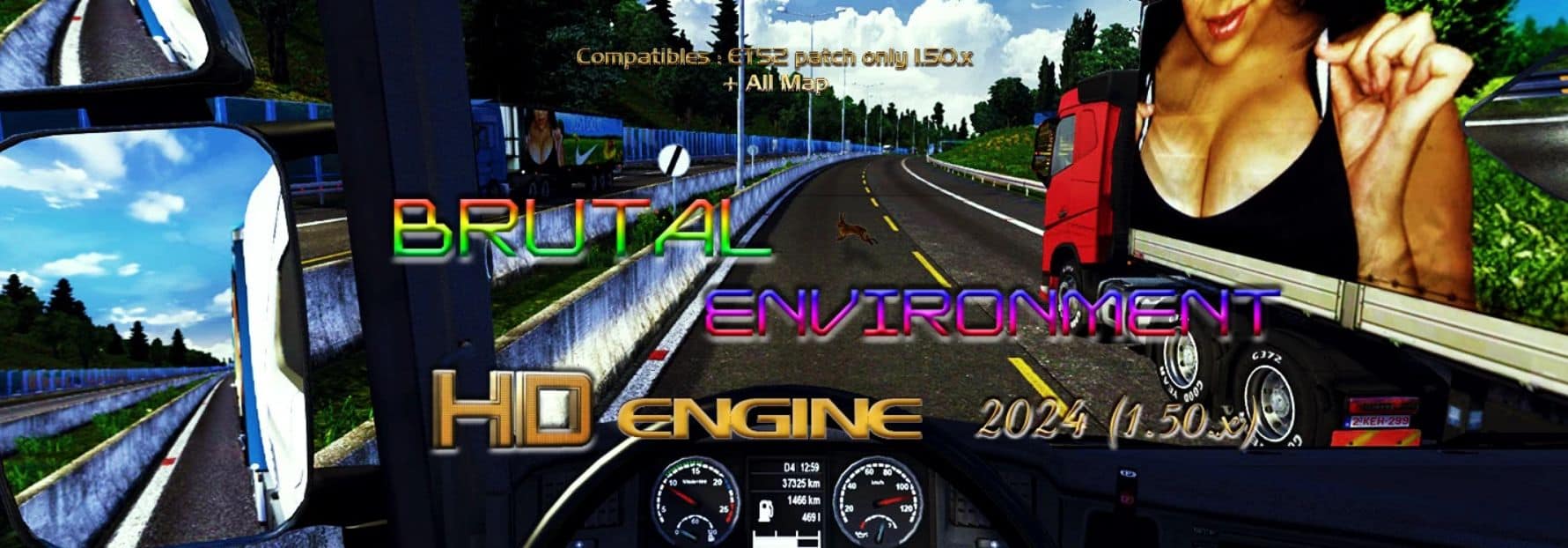 Dear players, here is the latest version. More beautiful asphalt and more realistic colors of vegetation, better weather, more visible on the horizon rain with fewer clouds, and improved night driving even with dimmed lights. Healed cataract sick eye effect (flare repairing by Dr. Stewen), stronger rain beating on the tires, snow but also the smoke. I didn’t touch all the textures, only those that I think are necessary, because the original SCS concept has improved a lot, I have to see that. But not in everything. A more pleasant game experience even with competitive truck driving, because the Scania 1500 horsepower engine with a maximum speed of 200 km/h and reduced but realistic Sunday car traffic remains. Use it and enjoy it if you like it, and if you don’t, then trash it.