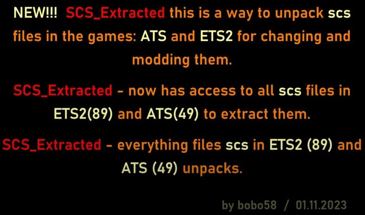 NEW!!! SCS_Extracted this is a way to unpack scs files in the games: ATS and ETS2 for changing and modding them.