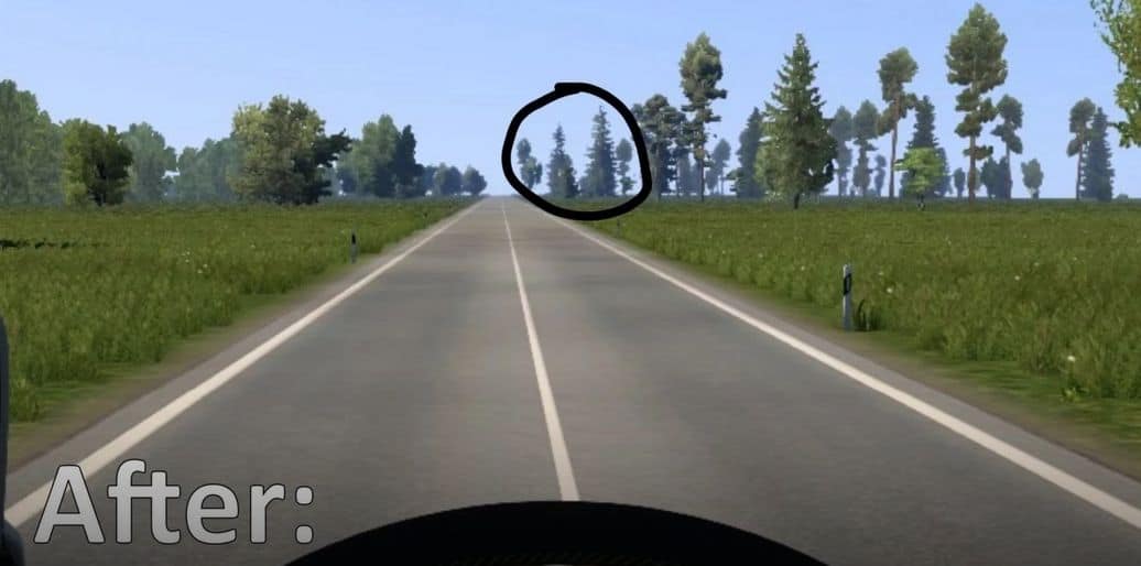 This mod only affects the trees that are not a large distance from the road (usually 50m or so depending on the map and the place).