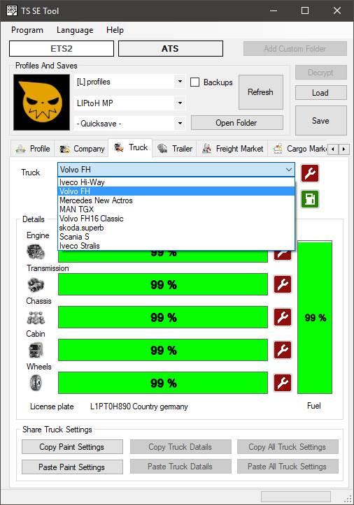 – edit saved colors for truck and trailer.