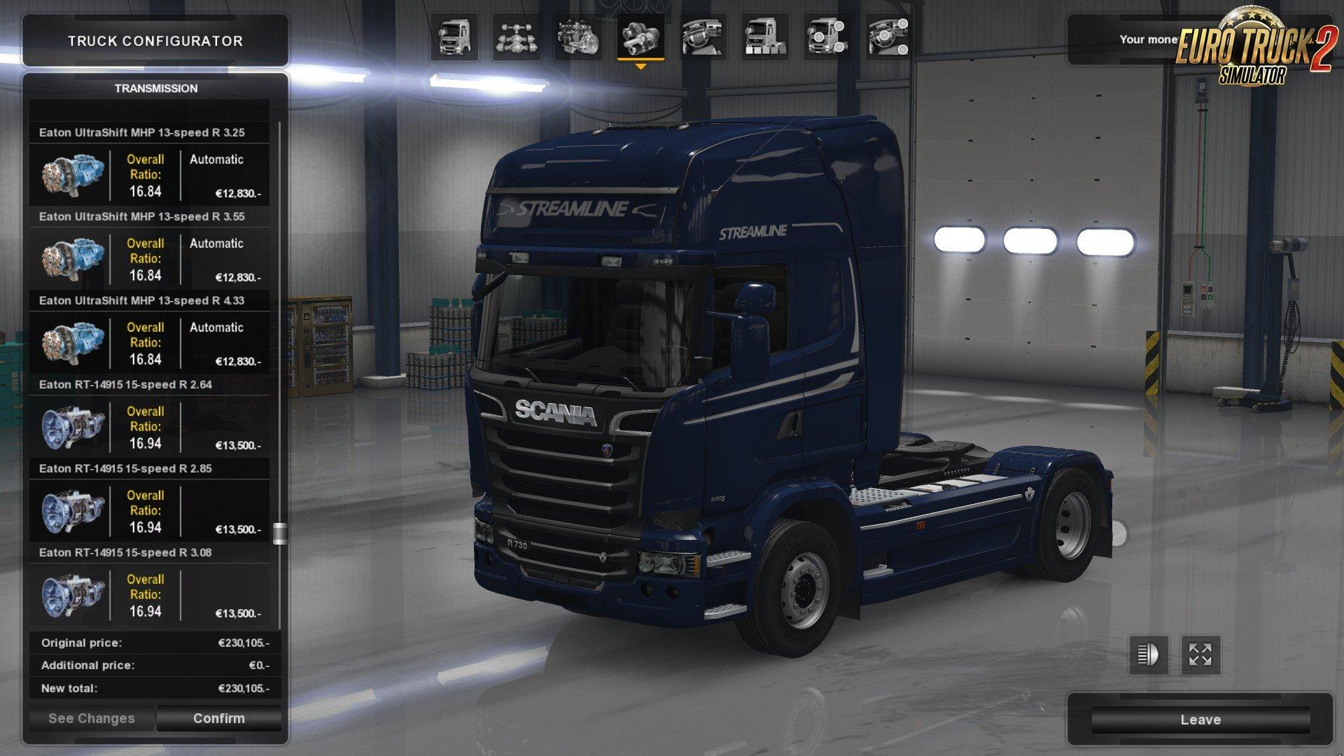 This mod adds 248 Eaton Fuller transmissions in total with real specifications into the game.
