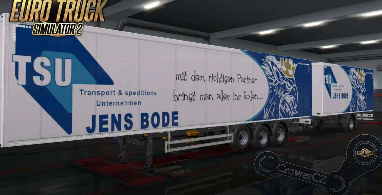 Are you interested in finding more information about Trailer Skins mods? Then it is your lucky moment because in our website you will find various ETS 2 Mods which will help you to develop your game. Every particular Euro Truck Simulator 2 mod will provide you with a lot of new solutions. This is why you should not wait a second more and download TSU Jens Bode Trailer 1.48 right now! You will be able to upgrade your Euro Truck Simulator 2 without any limits the way you have always wanted. There is nothing you can lose – no risks are guaranteed. That’s why we encourage you on downloading Trailer Skins without any payment – just hit on the button and get everything for free! One thing worth mentioning – if you want to upgrade or modify TSU Jens Bode Trailer 1.48 in any way, it would be great that you would require the permission of the author. With ETS 2 Mods you will experience that trucking has never been better before! Explore new features and overcome all boundaries – it is the best time to achieve your most important goals!