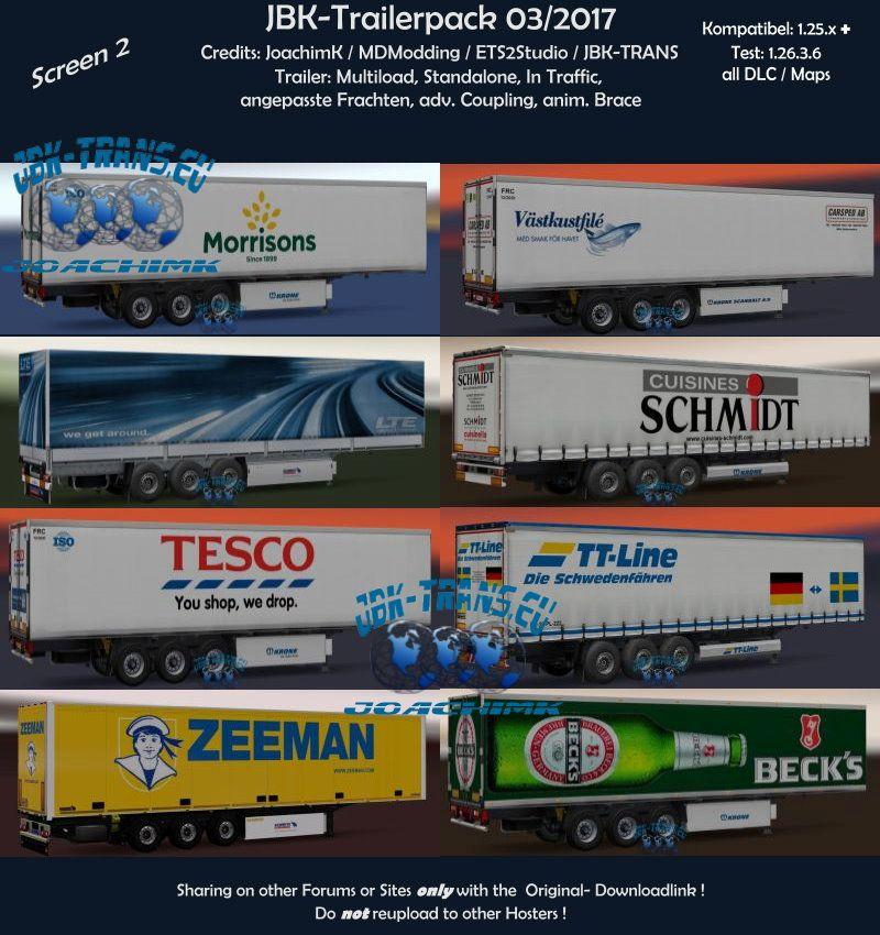 JBK TRAILER PACK 03/2017 V1 ANHÄNGER ETS2 Mods | 12 März, 2017 JBK TRAILER PACK 03/2017 V1 ANHÄNGER igenschaften Trailer: - Erweiterte Kopplung - Animierte Zahnspange – Standalone, in Traffic - Angepasste Frachten - ModManager bereit Credits: JoachimK, MDModding, ETS2Studio, JBK-TRANS Dieser Inhalt wurde von Besuchern der Website hochgeladen. Wenn Sie einen Fehler entdecken, lassen Sie es uns bitte wissen. Herunterladen Das könnte Ihnen auch gefallen... EKERI TANDEM TRAILERS ADDON BY KAST V2.0.4 1.32+ ETS2 Anhänger 1 März, 2019 Hochspannungstransformator Trailer v1.1 Trailer mod Anhänger 21 Okt. 2016 HTLI Trailerskin v1.1 Anhänger 1 Dez., 2021 Schreibe einen Kommentar Antworten abbrechen Deine E-Mail-Adresse wird nicht veröffentlicht. Erforderliche Felder sind mit * markiertKommentar Name * E-Mail * Ich habe die Datenschutzbestimmungen gelesen und akzeptiert. * KategorienETS2-Bus ETS2 Fahrzeuge ETS2 Innenräume ETS2-Karten-Objekte ETS2 Karten ETS2 Sonstiges ETS2 Packs ETS2 Teile / Tuning ETS2 Klänge ETS2 Verkehr ETS2 Anhänger Skins ETS2-Anhänger ETS2 Lkw-Skins ETS2-LKWs ETS2-Fahrzeuge ETS2 Wetter