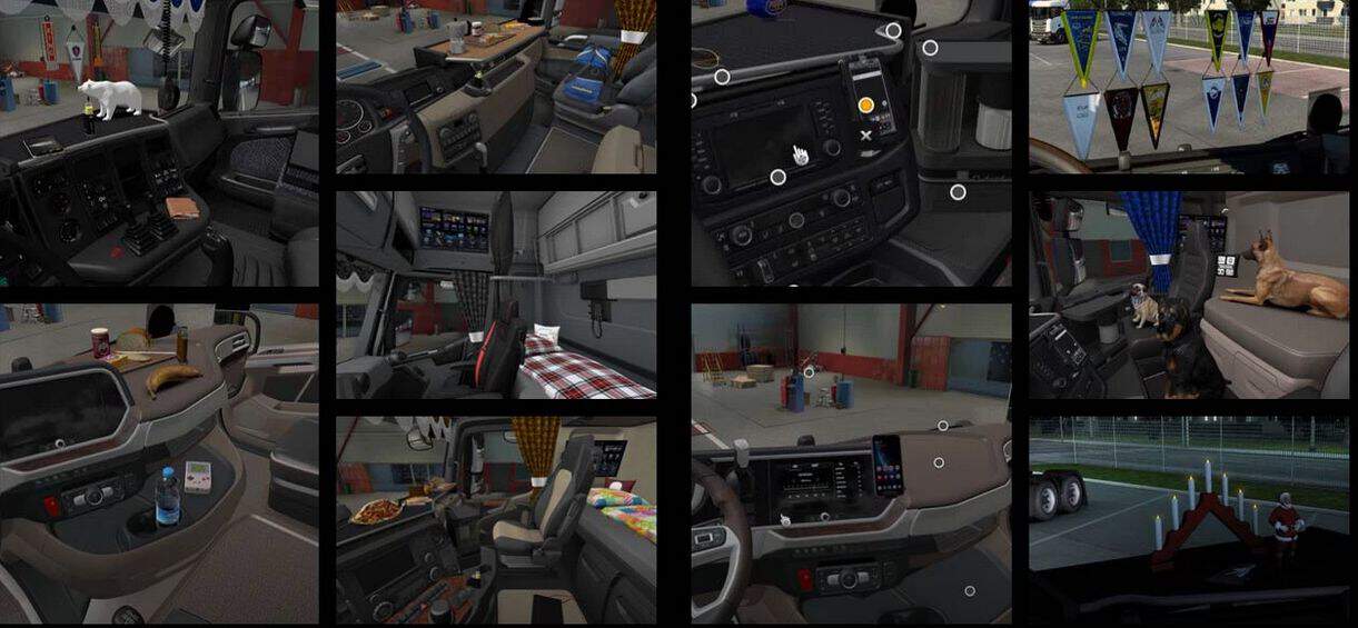 Work with all SCS and reworked trucks (EU+UK) how support the new cabin DLC.