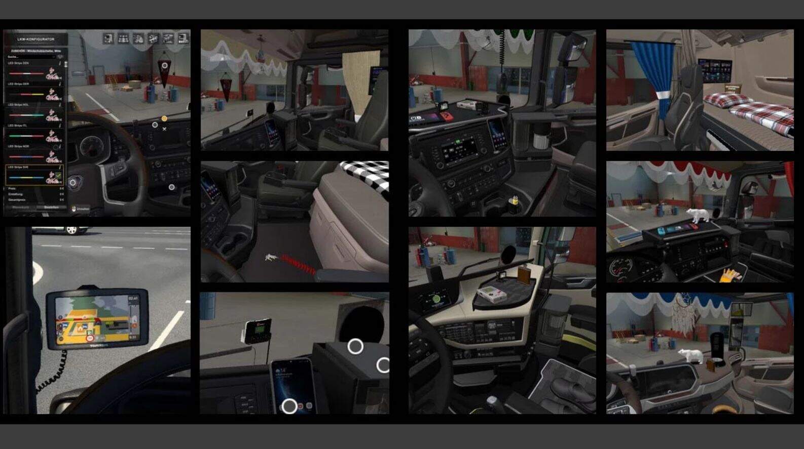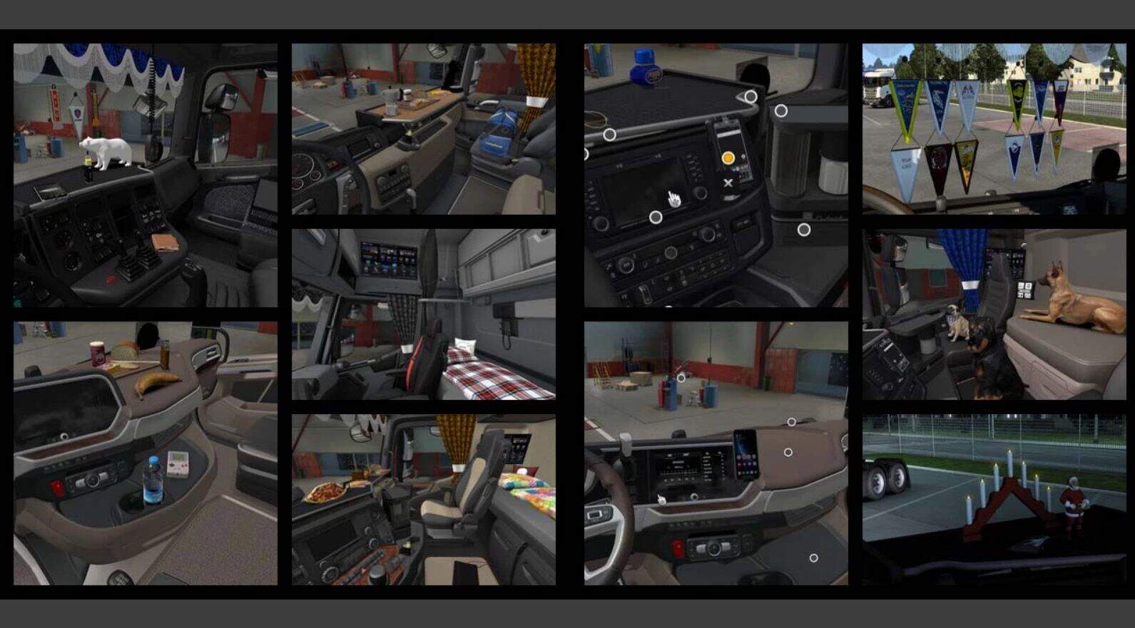 Work with all SCS and reworked trucks (EU+UK) how support the new cabin DLC.