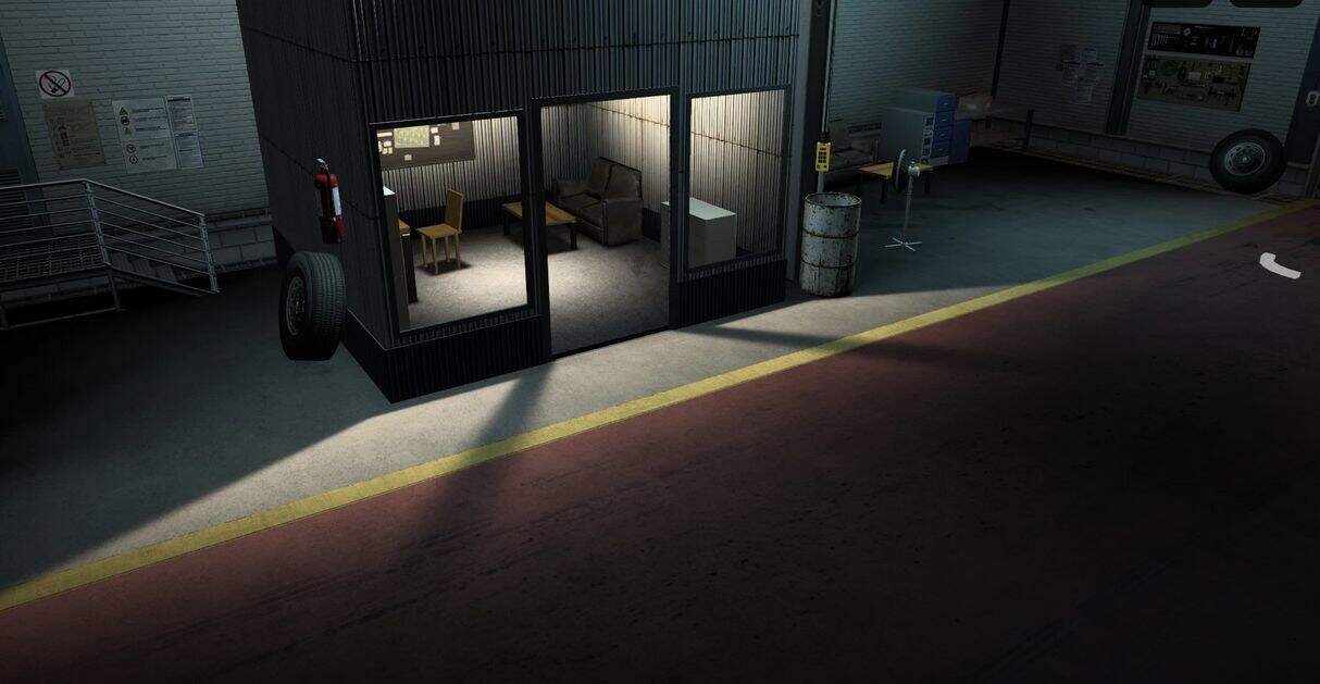 *a parking truck (inside the garage)