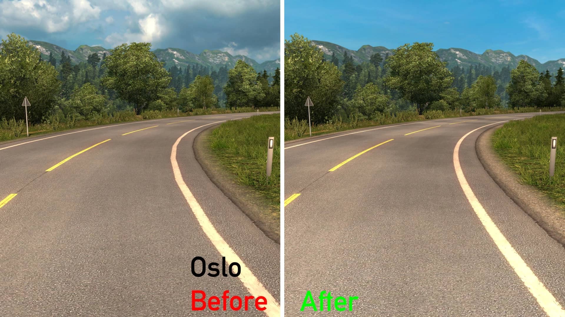 This mod replaces the roads in France, Scandinavia, Italy, Baltics and the reworked parts of Germany with very high-resolution versions so that every road line you see are smooth, unlike the occasional curve that is made of up straight-line segments in the stock map.