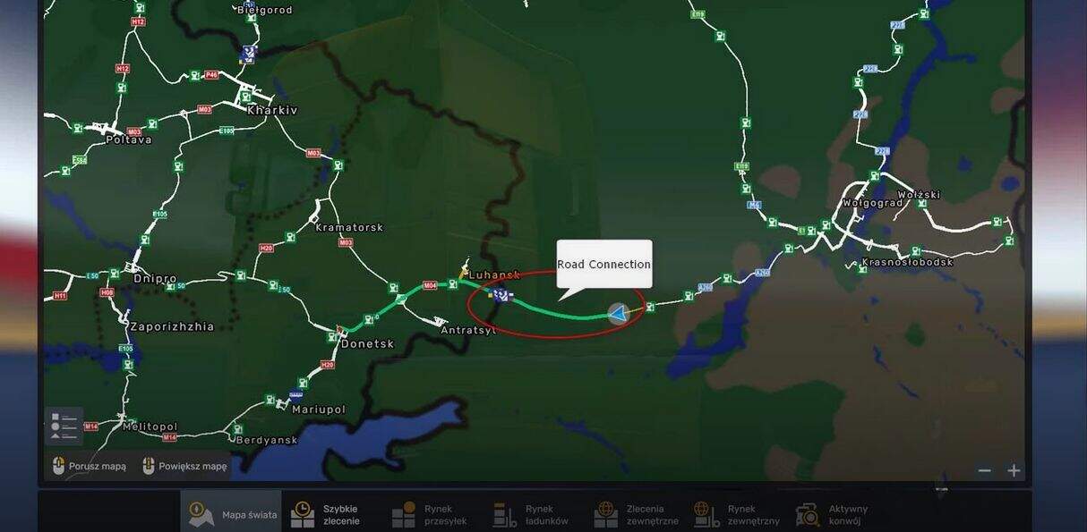 Practical road connection between the city of Luhansk (ROEX 4.6) and the distant environs of the city of Krasnoslobodsk (RusMap 2.54).