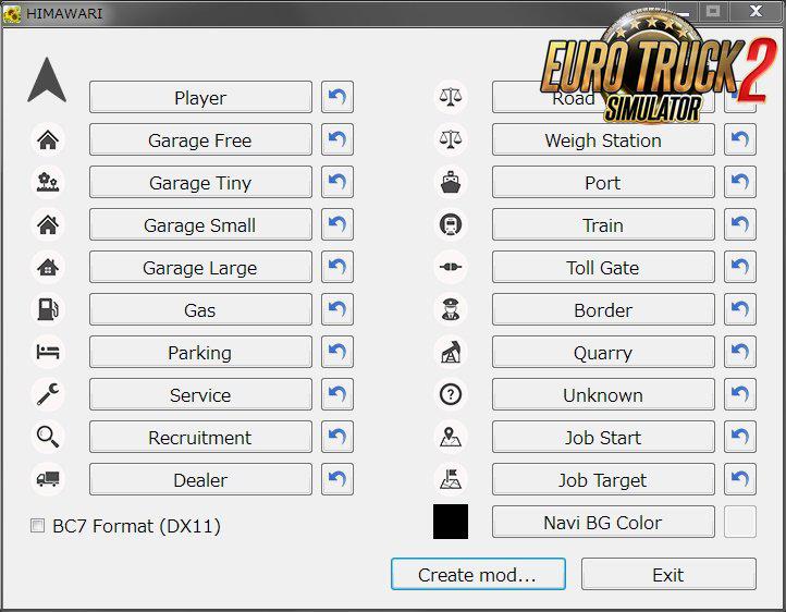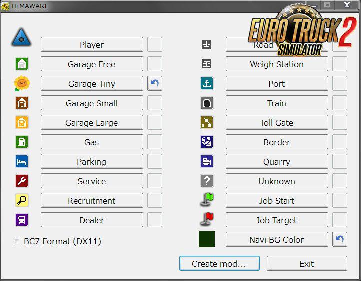 MAP ICON CHANGER – HIMAWARI 1.36.X MAP ETS2 Mods | 12 Feb, 2020 MAP ICON CHANGER – HIMAWARI 1.36.X MAP Map Icon Changer – HIMAWARI for Euro Truck Simulator 2 game With this mod you can change all the icons in the Ets2 default map Credits: Nihonsakari This content was uploaded by website visitors. If you notice any mistake, please let us know. Download Tags: Euro Truck Simulator You may also like... Roextended 4.3 Free 1.51 Maps 17 Sep, 2024 Russian Expansion 1.50 Maps 20 Jun, 2024 RUSSIAN OPEN SPACES V7.7 1.36 MAP Maps 20 Feb, 2020 Leave a Reply Cancel reply Your email address will not be published. Required fields are marked *Comment Name * Email * I have read and accepted the Privacy Policy * CategoriesETS2 Bus ETS2 Cars ETS2 Interiors ETS2 Map Objects ETS2 Maps ETS2 Other ETS2 Packs ETS2 Parts / Tuning ETS2 Sounds ETS2 Traffic ETS2 Trailer Skins ETS2 Trailers ETS2 Truck Skins ETS2 Trucks ETS2 Vehicles ETS2 Weather