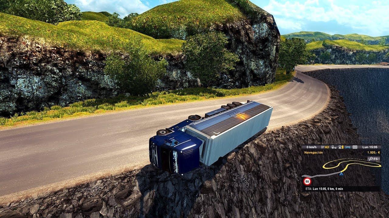 Map that adds a road with extreme and dangerous routes in the lower part of Italy and France.