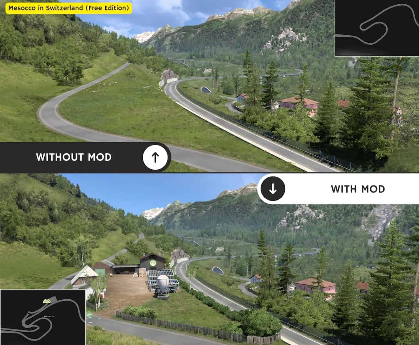 This edition allows you to activate 34 decorative towns across the Switzerland created by SCS Software.