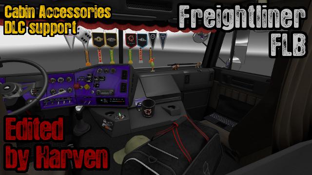 This mod will allow you to use all available DLC accessories in your Freightliner FLB truck (Compatible with FLB, edited by Harven). DLC must be installed in your game before you can use this mod. Put this mod above the mod truck in the mod manager.