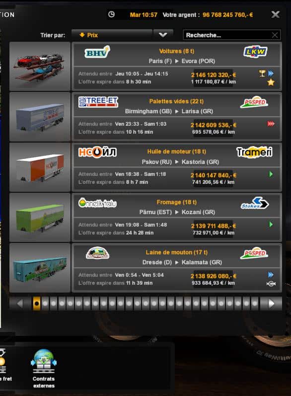 • The minimum income is approx. 0.32$/mile for Quickjobs and at least 0.52$/mile for Freightmarket jobs.