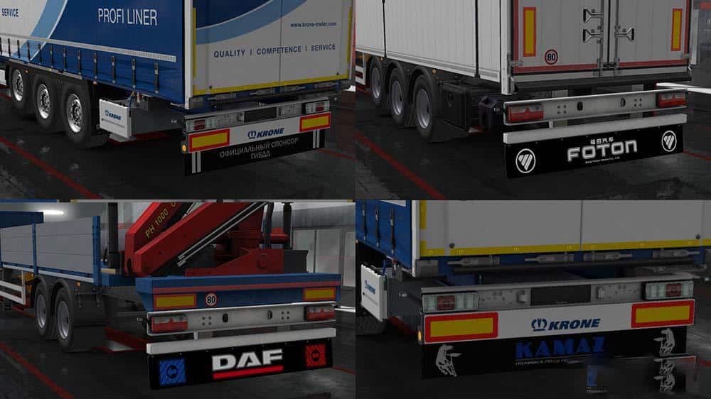 This mod adds 29 types of mudflaps for your own trailers to the game store.