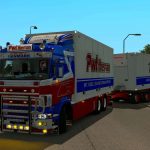 Skin pack for Scania RJL 4 &6 series tandem Ekeri with 2 lightbox and ownable Ekeri trailer, mods needed: Ekeri semitrailer by Kast, Ekeri Tandem addon by Kast, Tandem Addon scania RJL by Kast, light and accessory by Powerkasi, RS Scania addons by Powerkasi;for low cabin you need lightbox PWT Thermo by 50k