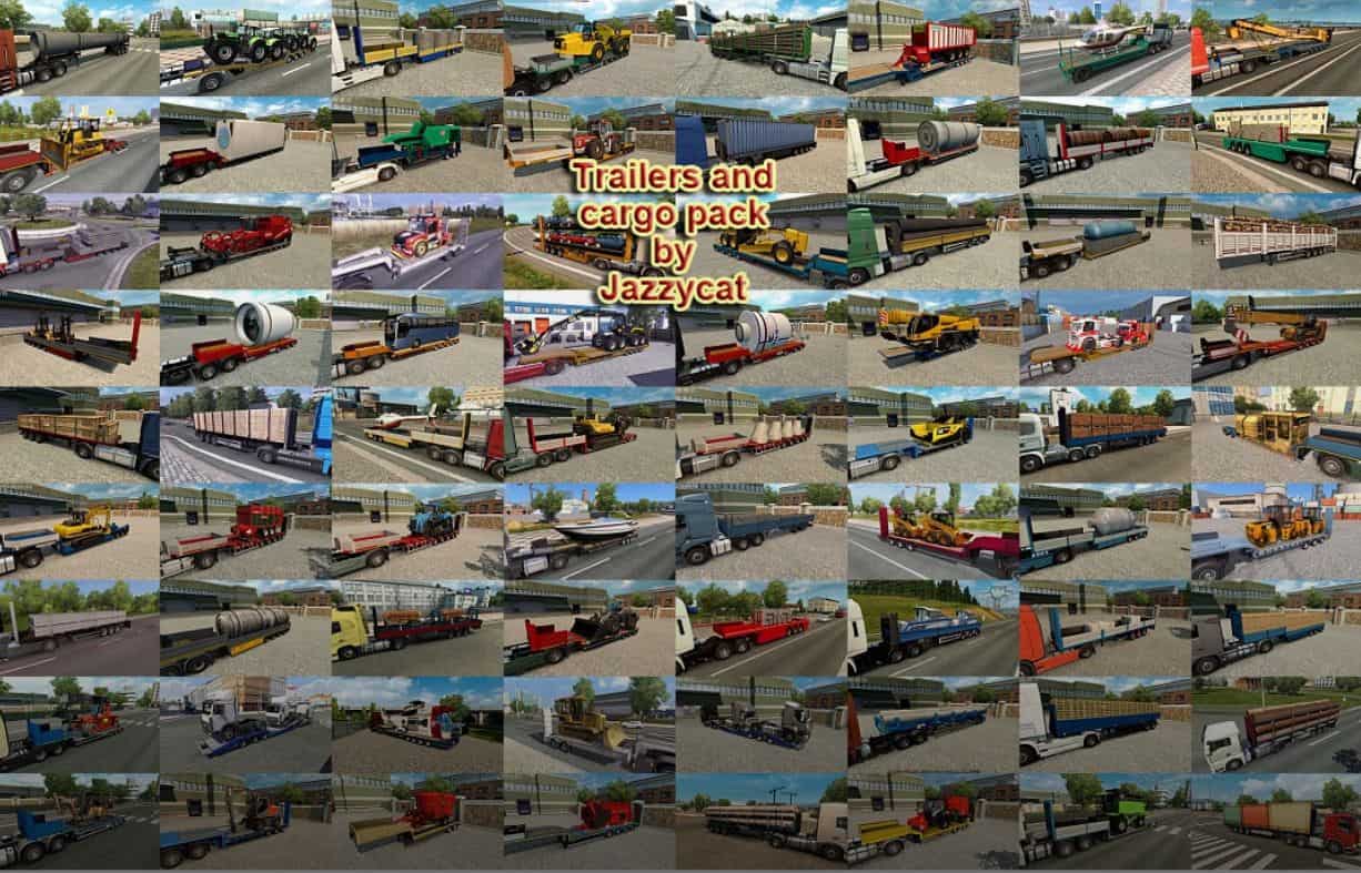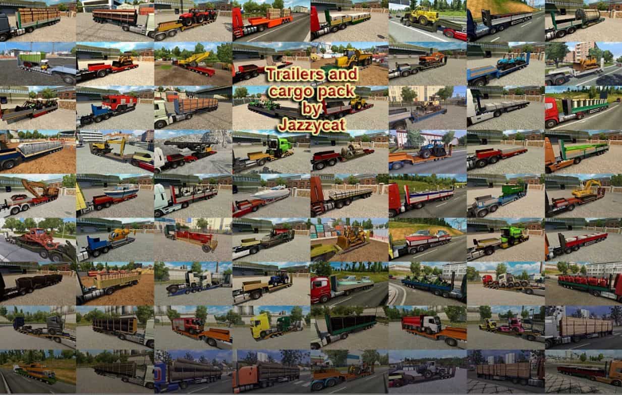 Pack adds in game 175 new models of trailers (different trailers by Kögel, Fliegl, Böse, Närko, Lamberet, Chereau, Schmitz, Bodex, Wielton, D-Tec, Fruehauf, Schwarzmüller, Kassbohrer, Rolfo, Samro, Krone, Pacton, Ekeri, Goldhofer, Kröger, Aydeniz, Nooteboom, Sommer, NTM, HRD, Estepe, Fontaine, McLendon, Krampe, Kotte, Panav, Kempf, Langendorf, Galtrailer, Michieletto, Groenewegen, Chmzap, Maz, Nefaz, Szap, Tonar, Odaz, Becema and others), 772 new cargo, 744 traffic trailers and about 3000 skins.
