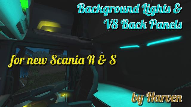 BACKGROUND LIGHTS & V8 BACK PANELS FOR NEW SCANIA R & S 1.30 TUNING MOD