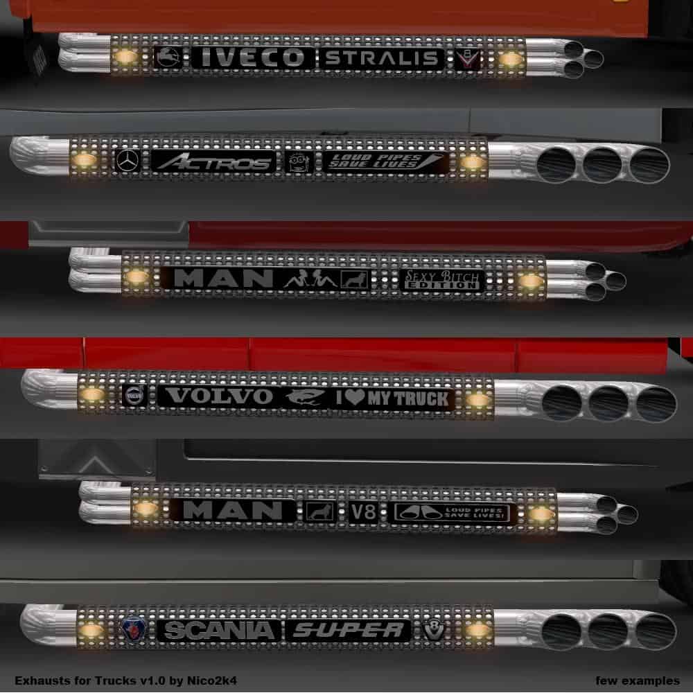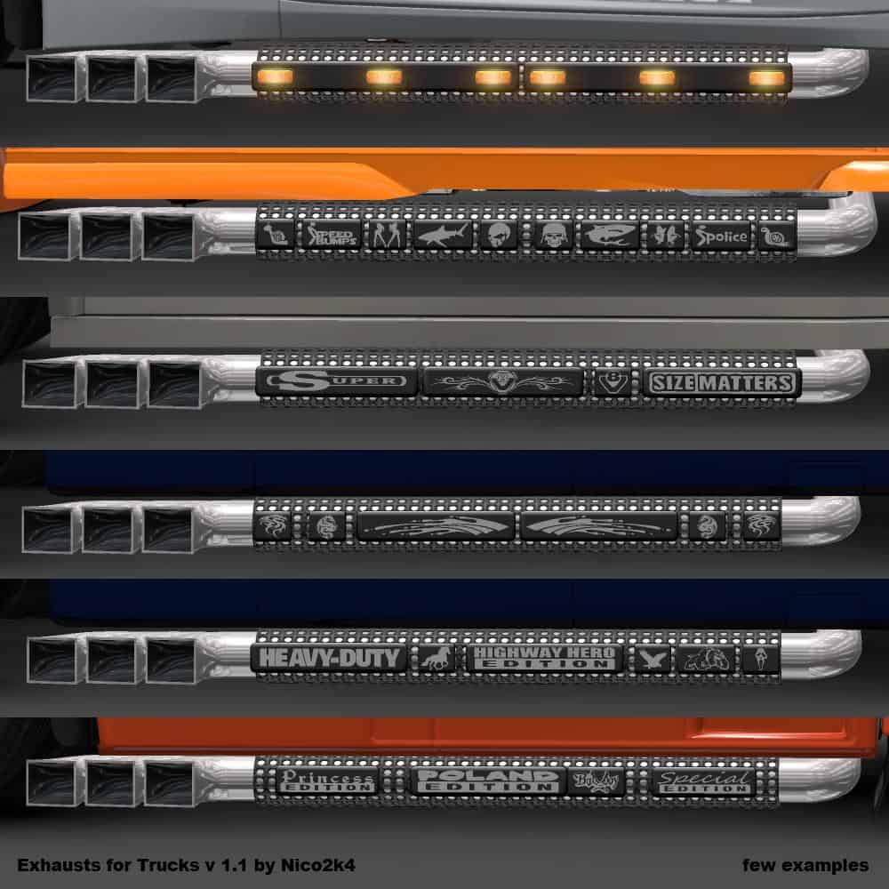 Mod adds exhaust pipes and various accessories for trucks: