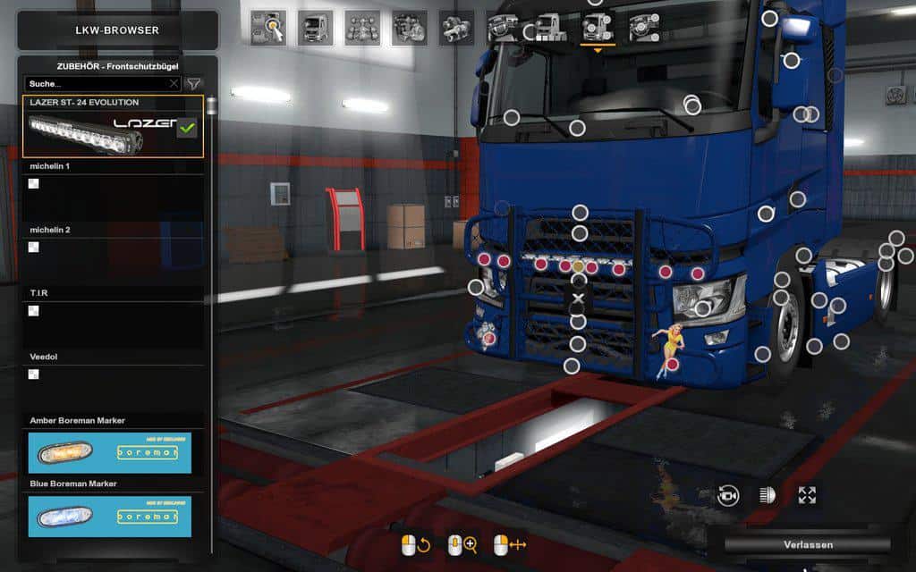 – LED Lightbar, Michelin signs, T.I.R. Plate and Veedol Girl for slots