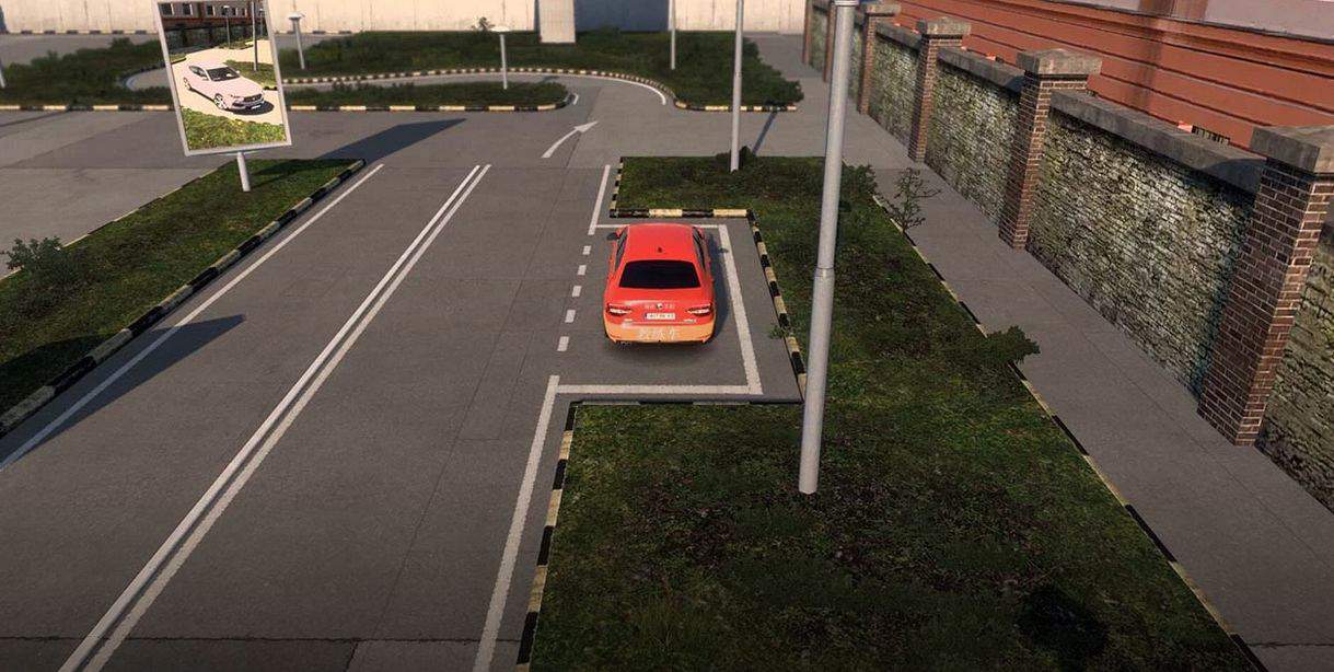 Reversing into the garage, parking on the side, driving on a curve, turning at a right angle, parking and starting at a fixed point on a slope.
