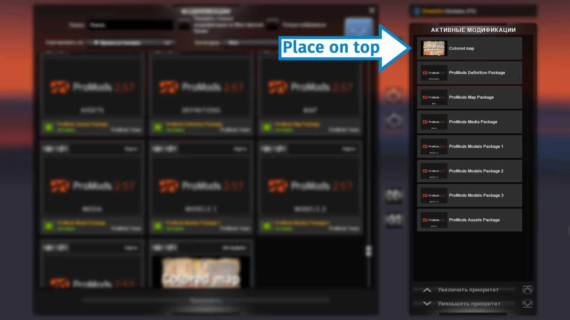 Place in the mod manager above the Promods files.