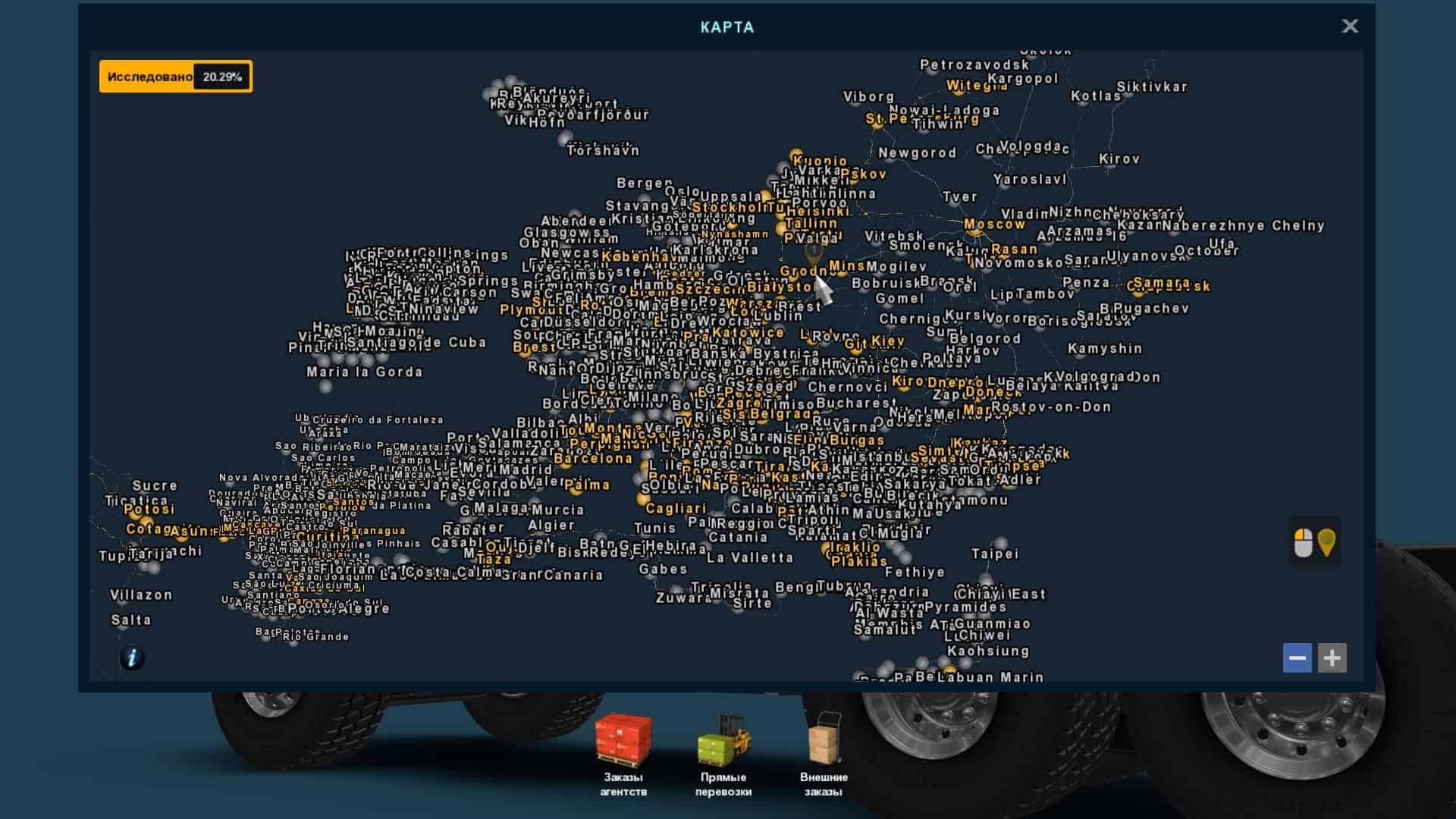 The updated map of Mario 12.8 includes Europe, Africa, part of Russia, Ukraine, Belarus, as well as South and North America. Includes more than 700 cities, the map is compatible with DLC France (without it does not work), so for the operation of the map you need DLC To the East and DLC Scandinavia