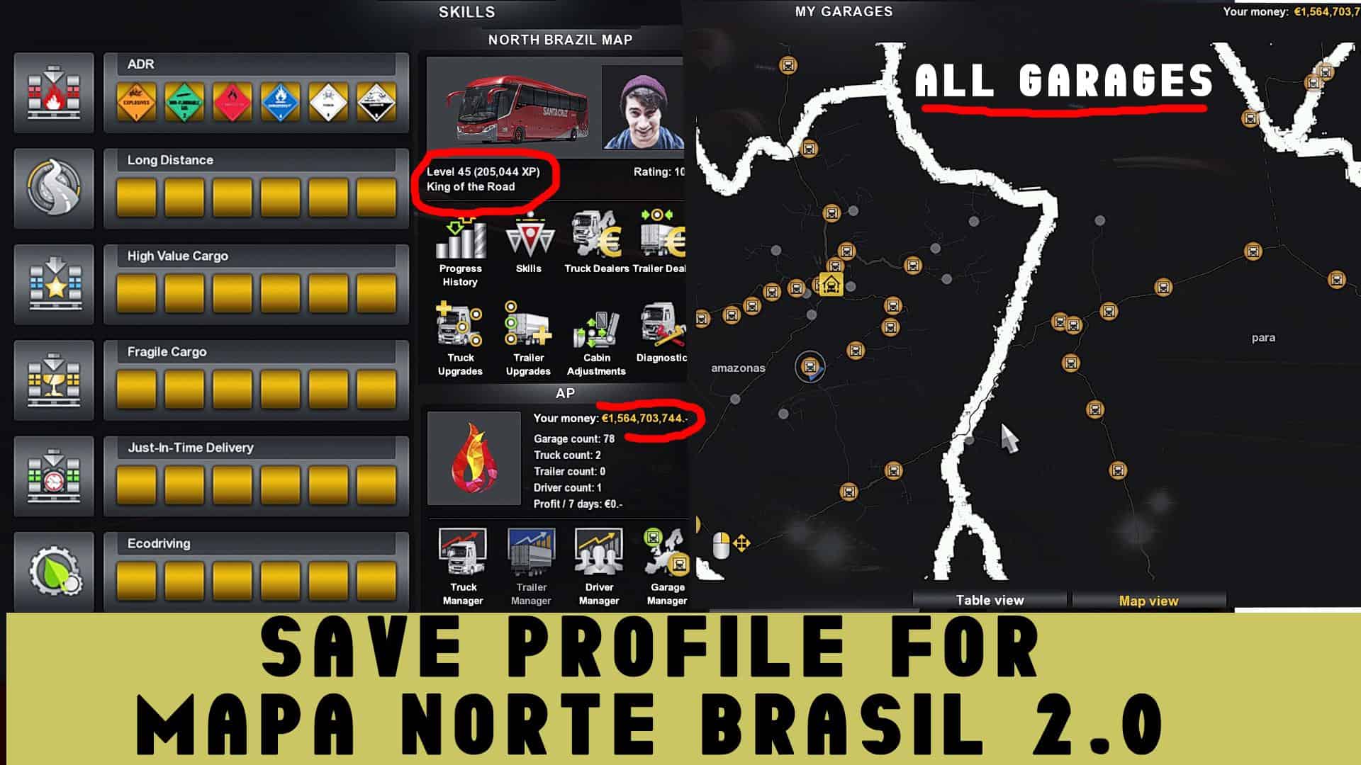 SAVE GAME (PROFILE) FOR MAPA NORTE BRASIL V2.0 ETS2 1.34 ETS2