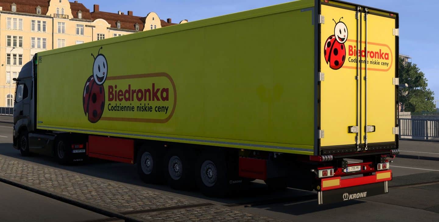 Are you interested in finding more information about Trailer Skins mods? Then it is your lucky moment because in our website you will find various ETS 2 Mods which will help you to develop your game. Every particular Euro Truck Simulator 2 mod will provide you with a lot of new solutions. This is why you should not wait a second more and download BIEDRONKA KRONE COOL LINER 19 07 2025 v1.0 1.55 right now! You will be able to upgrade your Euro Truck Simulator 2 without any limits the way you have always wanted. There is nothing you can lose – no risks are guaranteed. That’s why we encourage you on downloading Trailer Skins without any payment – just hit on the button and get everything for free! One thing worth mentioning – if you want to upgrade or modify BIEDRONKA KRONE COOL LINER 19 07 2025 v1.0 1.55 in any way, it would be great that you would require the permission of the author. With ETS 2 Mods you will experience that trucking has never been better before! Explore new features and overcome all boundaries – it is the best time to achieve your most important goals!