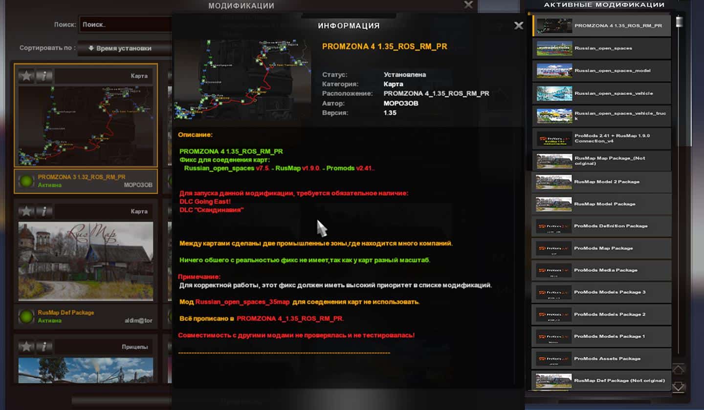 Mod Russian_open_spaces_35map for connecting cards not to use. Everything is included in the PROMZONA 4_ 1.35_ROS_RM_PR mod.