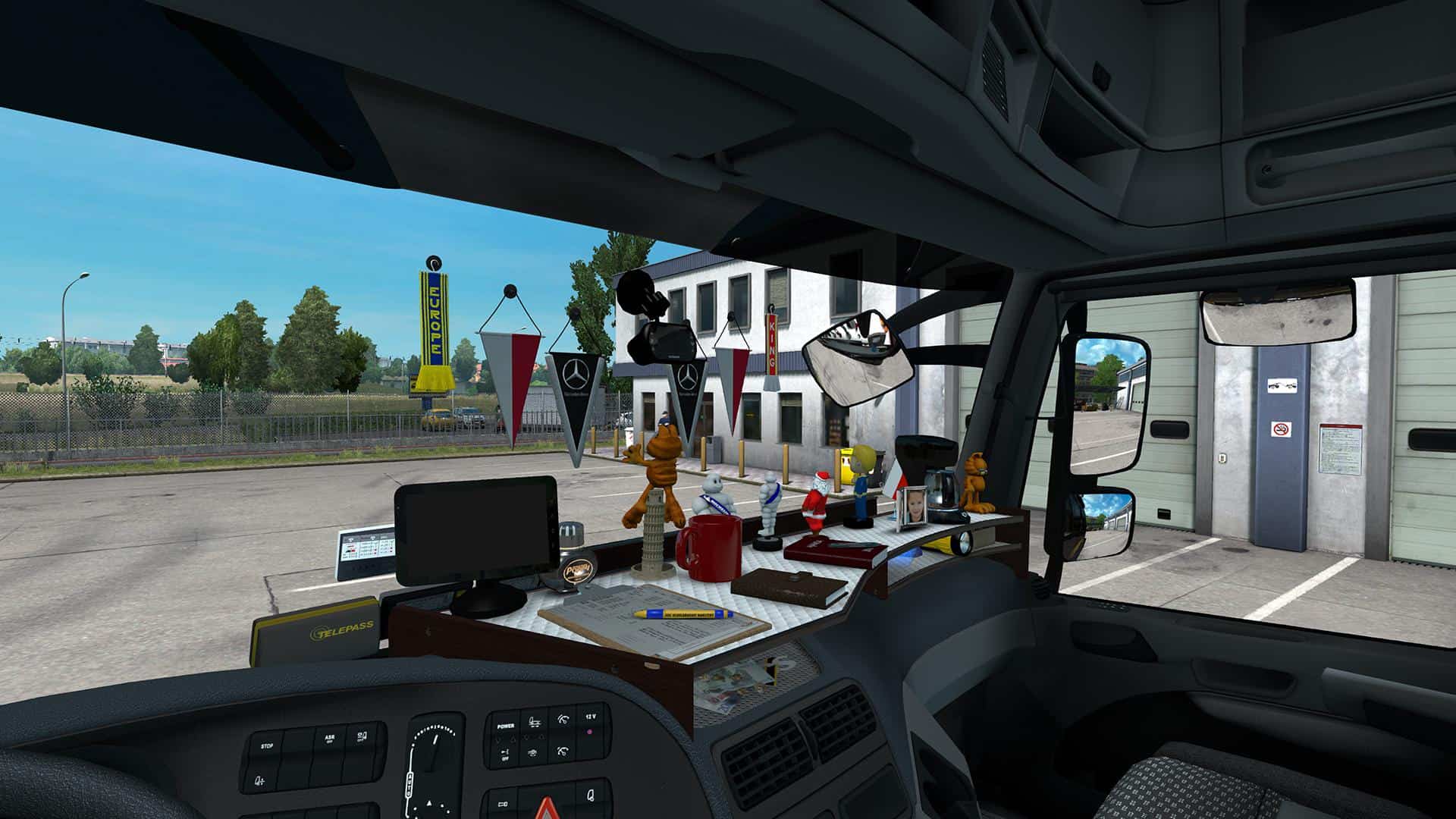 A custom made table and wind-shield slots set for the MB Actros MP3. Includes the UK variant.