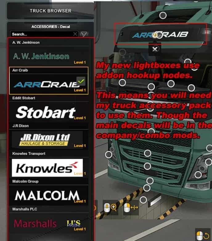 The mod adds various truck accessories to the game.