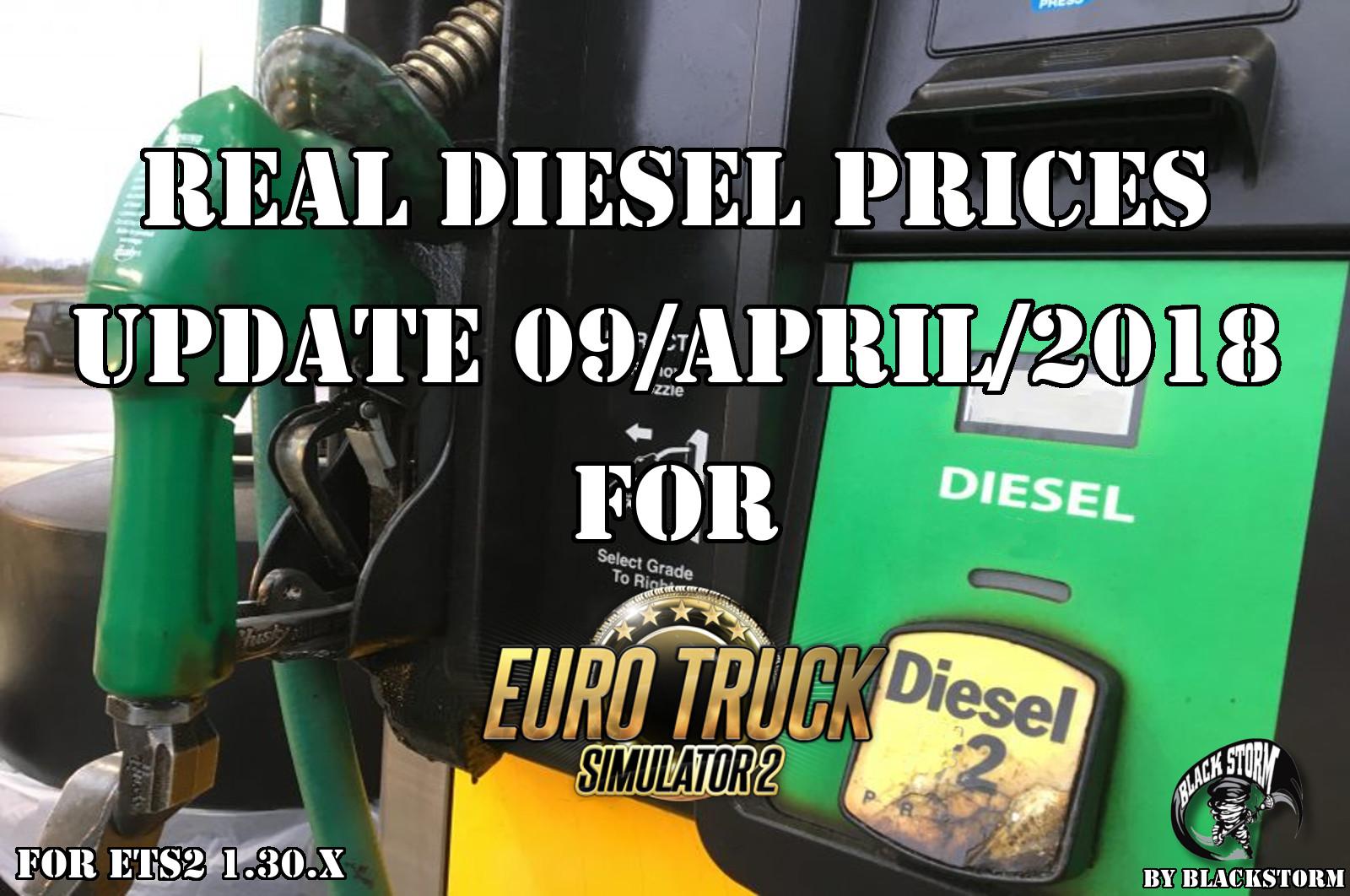 Diesel prices for Euro Truck Simulator 2 map updated to April 09, 2018: