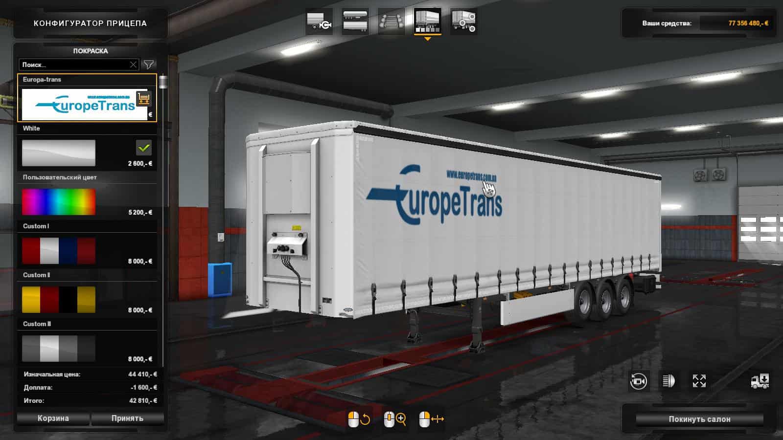 This skin painting trailer company Europa-Trans, it works on version 1.34, available in such types of trailers as: