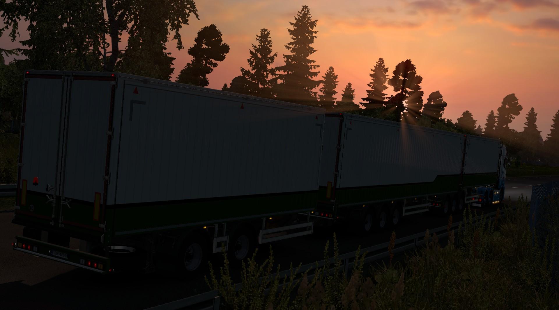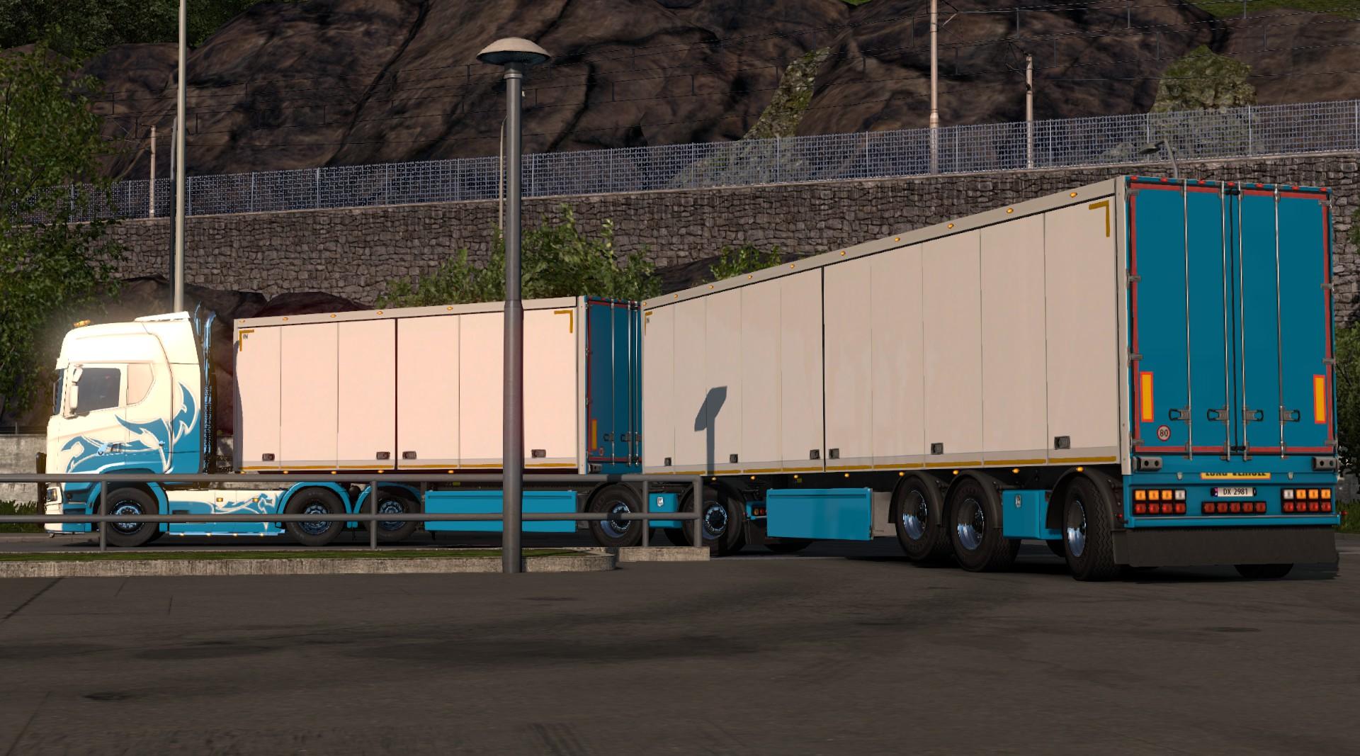 This mod adds a crapton of new B-double trailer combos, allows flatbed to be used in doubles (both types), adds aero trailer in B-double (not customisable except wheels), some triple trailer configs and