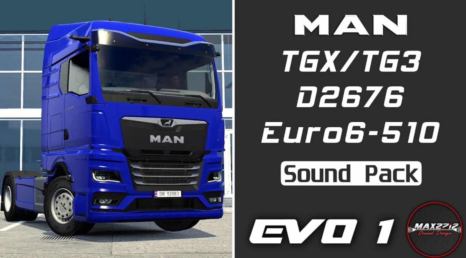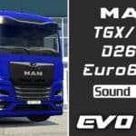 Sound pack for the 2020 MAN TGX (TG3) truck for ETS2, consisting of high-quality sound samples from a 2022 MAN TGX 18.510, equipped with a stock 12.4 l MAN D2676 Euro 6e engine.