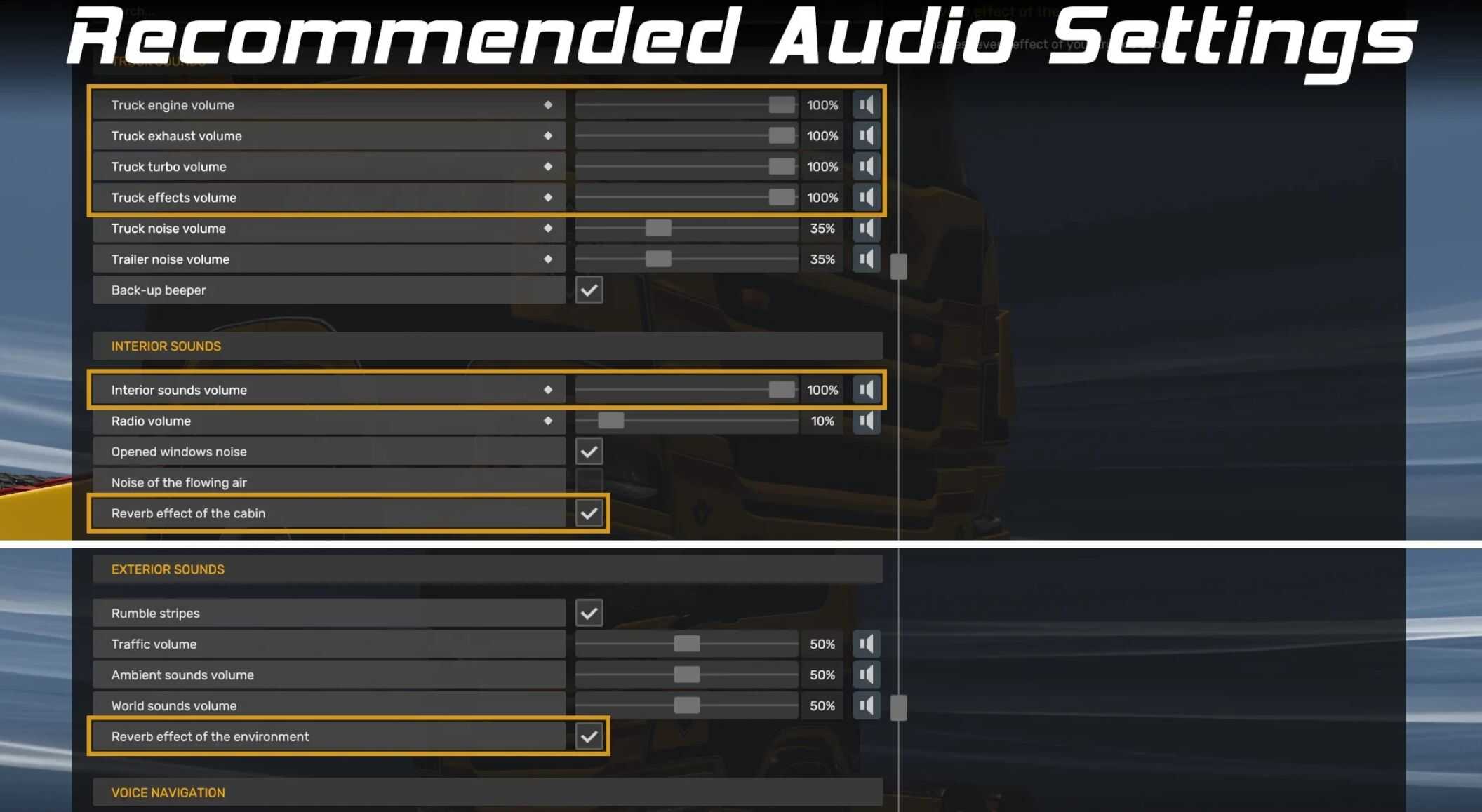 – Enhanced cabin noise insulation: Experience the comfort of a quieter cabin, while still feeling the raw power of the engine through crisper, more realistic audio and true-to-real life reverb settings. This creates a much more dynamic sound experience, deepening your sense of immersion and realism.
