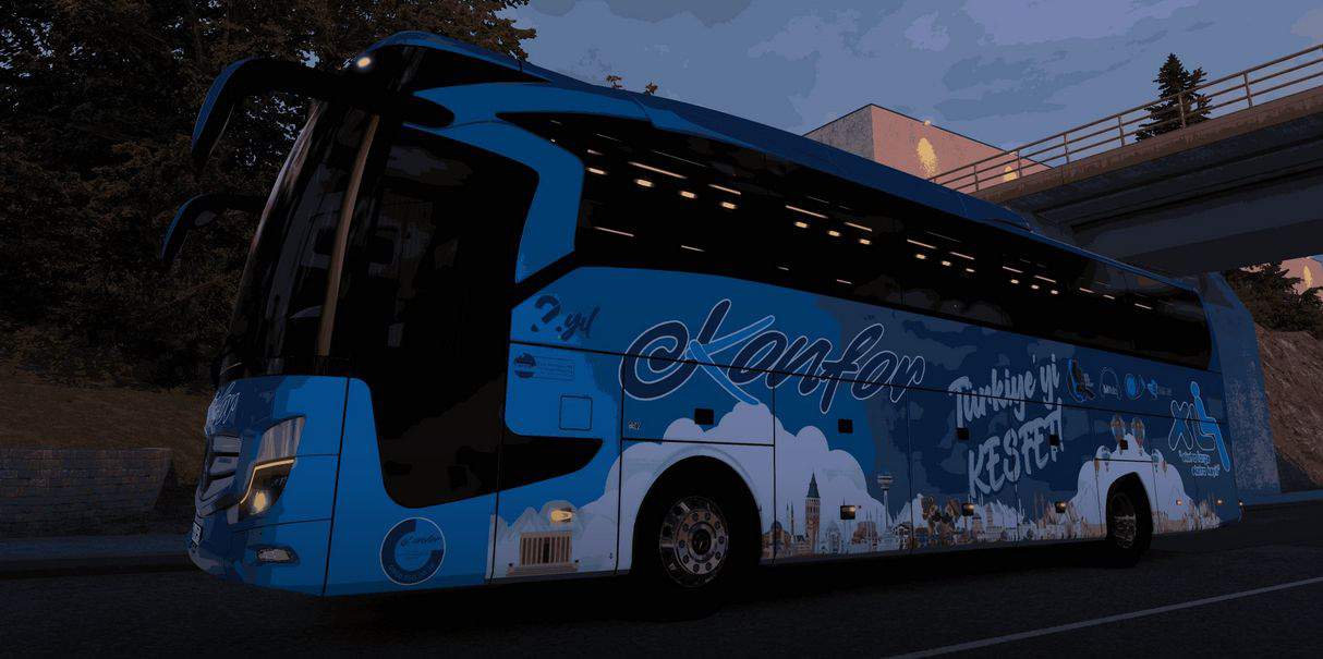 I am with the Mercedes Benz Travego 15 SHD 2+1 2023 model Konfor Turizm Corporate Coatings, one of the Heavy Vehicles Turkey mods. Custom Template is released in 1,2,3,4. You can also join the Konfor Turizm family and become a Virtual Bus Driver. For all this and more…