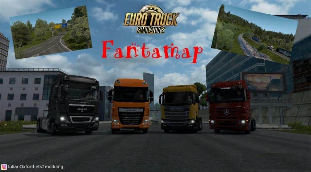 Nasıl yüklenir: Dosyayı sharemods'tan indirin, .scs dosyalarını ETS2 için mod klasörünüze açın. Yeni bir profil oluşturun, her iki modu da etkinleştirin ve "Fantamap.mdb" oyun modülünü seçin