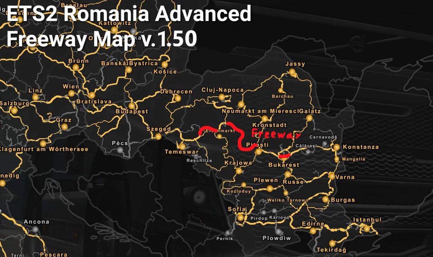 This is a Romania advanced freeway map mod who is based on the real freeway (A1) in romania. The Freeway is going from Szeged (Hungary) to Bucharest (Romania). The Freeway is partially under the construction now in the reality. Some Parts of the freeway are already finished but the freeway is not completely finished yet. The freeway is planned to be finished in the year 2027. But in this map mod here the freeway is already completely done. Here you can see how the freeway will look approximately later when the freeway is completely finished in the reality. The time to make the Romania advanced freeway map was 1 year.