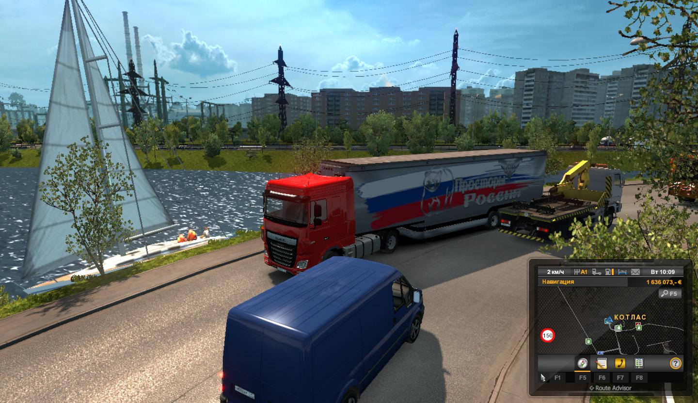 Krediler: Author of the map: MOROZOV (Pavel) The authors of the models: oq37, kosa6414, klipstoeun8839. Author of loading screens, skins of the new company, skins for trucks and tow truck and skins of new trailers :: ♕-SlawkA-♕. Testers: sowa, Olsestar. In the fashion used models taken from the cards: - RusMap (with permission of the author of Gricko models). - TSM MAP (version from mario1961, with its permission). - Models of trailers are used in the fashion: Nephaz semi-trailer tilt and non-phase tank semi-trailer (with the permission of the author of Koral models). - In the fashion used models of trailers from Jazzycat, Roadhunter, Satan19990, Syncron3DCreations, Patrick Poulsen, MDModding. - The model of the crane for the tow truck is taken from the "Renault Magnum Recovery" fashion Author: Laxi. Thanks: - Many thanks kosa6414 for learning to work with Zmodeler 3! - Many thanks to Sergey (Term99) for helping to create a prefab intersection with the turn of cars. - Thank you very much Schumi for the help in working with new models! - And of course huge thanks to my assistants - sowa and Olsestar!