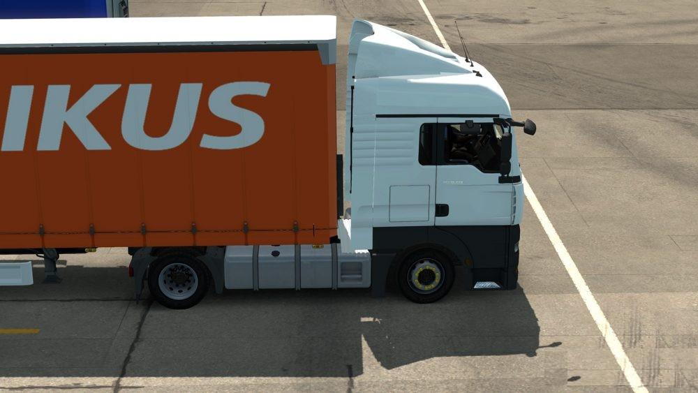 v1.6: Kingpin moved approx 30 cm back (reduced trailer/cabin gap); 24 new skins; tweaked materials on paint-able parts (less prone to bloom bleed, reduced environment reflections), all existing skins re-generated in 2k RGBA (no compression), added new SCS cargoes: ADR and flatbed trailer specific (should provide a trailer at every game company now), all skins can be selected at every pick up