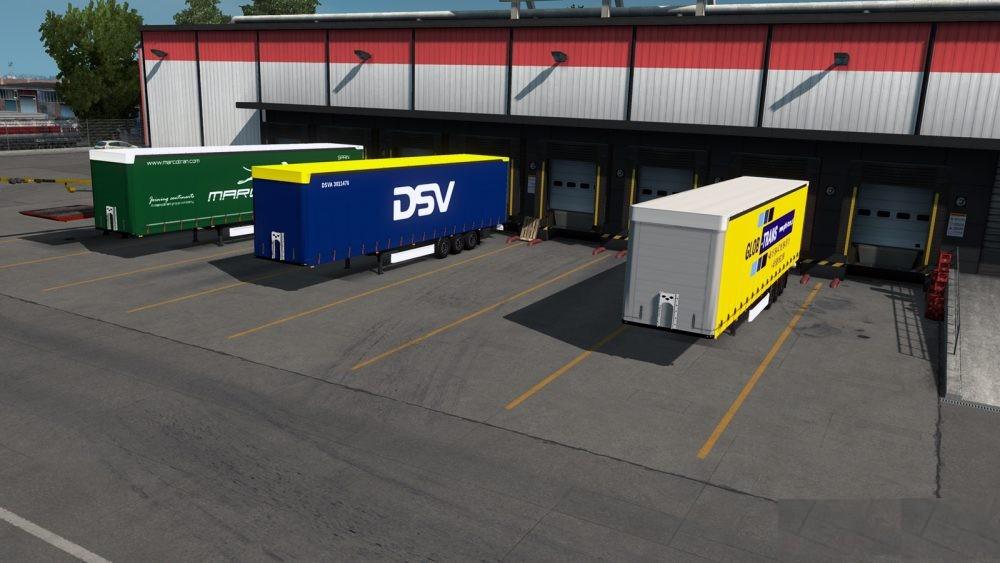 New in v1.6: 19 new unique company skins (24 with variants); more SCS cargoes (over 220 total); new kingpin position; tweaked materials, Every skin available via custom trailer selection on job screen