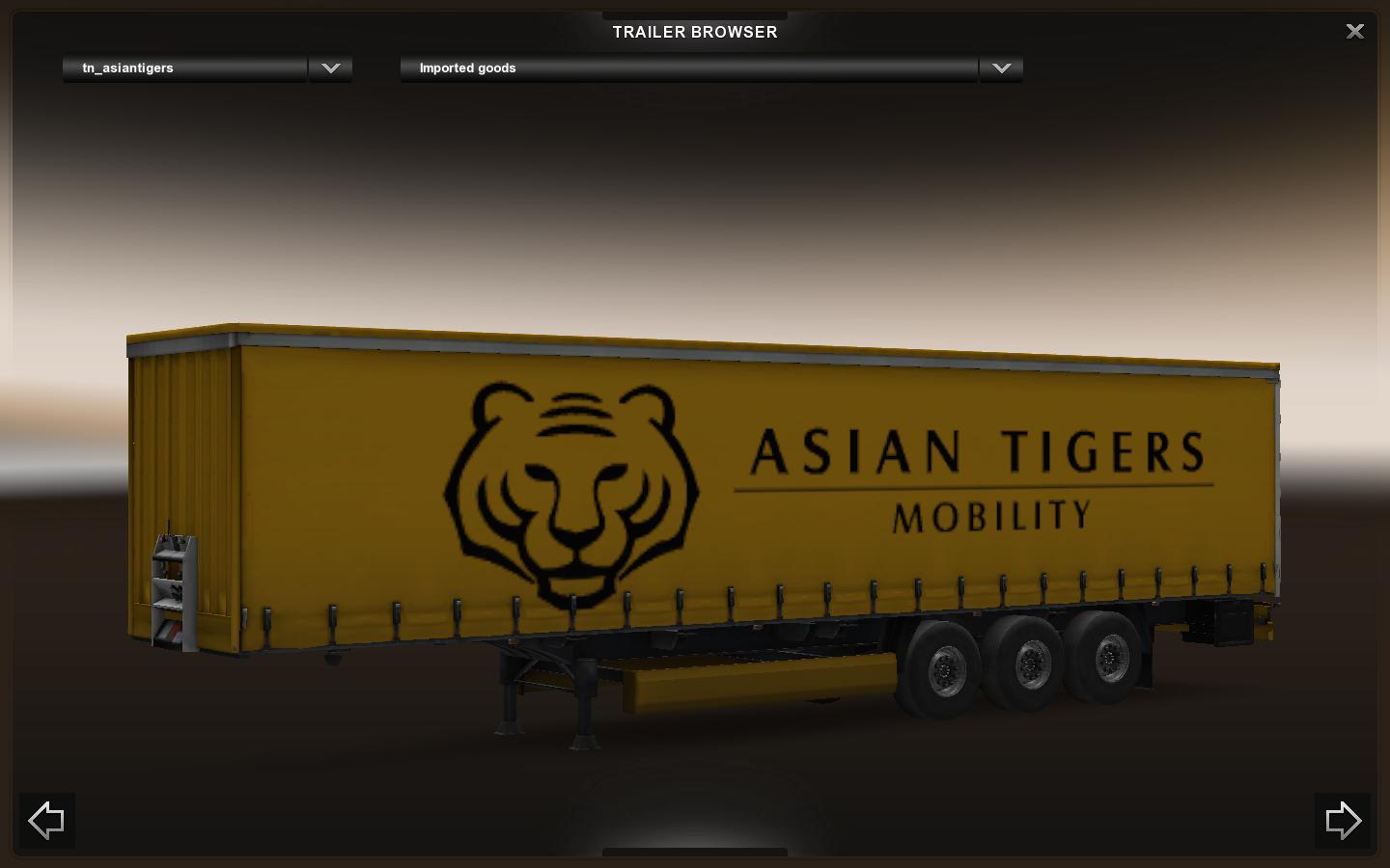 ASIAN TIGERS MOBILITY TRAILER 1.21-1.25 MOD ETS2 Mods | 14 Oct, 2016 ASIAN TIGERS MOBILITY TRAILER 1.21-1.25 MOD Asian Tigers Mobility Logistics trailer for ETS2. You may share the mod but please don’t reupload it. Credits: tupatups This content was uploaded by website visitors. If you notice any mistake, please let us know. Download You may also like... MAERSK TRAILERS V1.0 MOD Trailers 18 Jul, 2018 Military Addon for Ownable Trailer Goldhofer v1.4.14 Trailers 1 Nov, 2023 COLORFUL TRAILER PACK V3.0 FOR MP [1.30.X] ETS2 Trailers 16 Dec, 2017 Leave a Reply Cancel reply Your email address will not be published. Required fields are marked *Comment Name * Email * I have read and accepted the Privacy Policy * CategoriesETS2 Bus ETS2 Cars ETS2 Interiors ETS2 Map Objects ETS2 Maps ETS2 Other ETS2 Packs ETS2 Parts / Tuning ETS2 Sounds ETS2 Traffic ETS2 Trailer Skins ETS2 Trailers ETS2 Truck Skins ETS2 Trucks ETS2 Vehicles ETS2 Weather