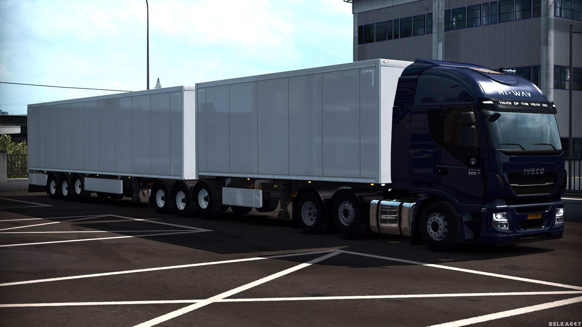 The modification removes the standard hitch restrictions: a double trailer, a B-Double trailer, an HCT trailer and allows you to buy them without any DLC, transport goods from the “Cargo market” and store them in any garage.