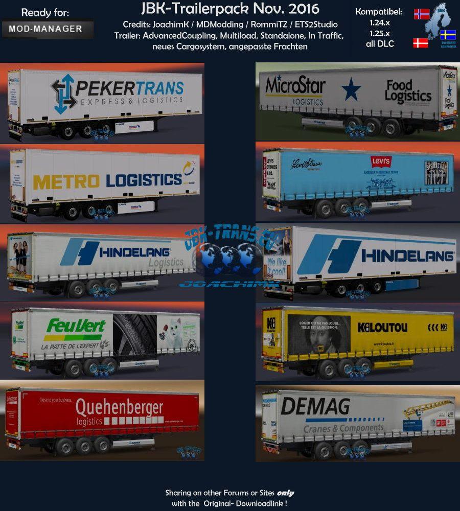 JBK-TRAILERPACK 11-2016 V1 Trailers pack ETS2 Mods | 1 Nov, 2016 JBK-TRAILERPACK 11-2016 V1 Trailers pack Tested in: 1.25.xx Trailer: – Profiliner (MDModding) – Schmitz SK.O (RommiTZ) Eigenschaften Trailer: – Standalone, – Angepasste Frachten – ModManager Ready – Advanced Coupling Credits: JoachimK, MDModding, Rommi TZ, SCS, ETS2Studio, JBK-TRANS This content was uploaded by website visitors. If you notice any mistake, please let us know. Download You may also like... Kögel Trailers by Dotec v1.0.3 Trailers 11 Dec, 2021 TRAILERS PACK VAROSI V3.2 – ETS2 1.30 – 1.31 MOD Trailers 10 Jun, 2018 ANIMATED SCHMITZ CARGOBULL 1.32.X TRAILER MOD Trailers 12 Nov, 2018 Leave a Reply Cancel reply Your email address will not be published. Required fields are marked *Comment Name * Email * I have read and accepted the Privacy Policy * CategoriesETS2 Bus ETS2 Cars ETS2 Interiors ETS2 Map Objects ETS2 Maps ETS2 Other ETS2 Packs ETS2 Parts / Tuning ETS2 Sounds ETS2 Traffic ETS2 Trailer Skins ETS2 Trailers ETS2 Truck Skins ETS2 Trucks ETS2 Vehicles ETS2 Weather