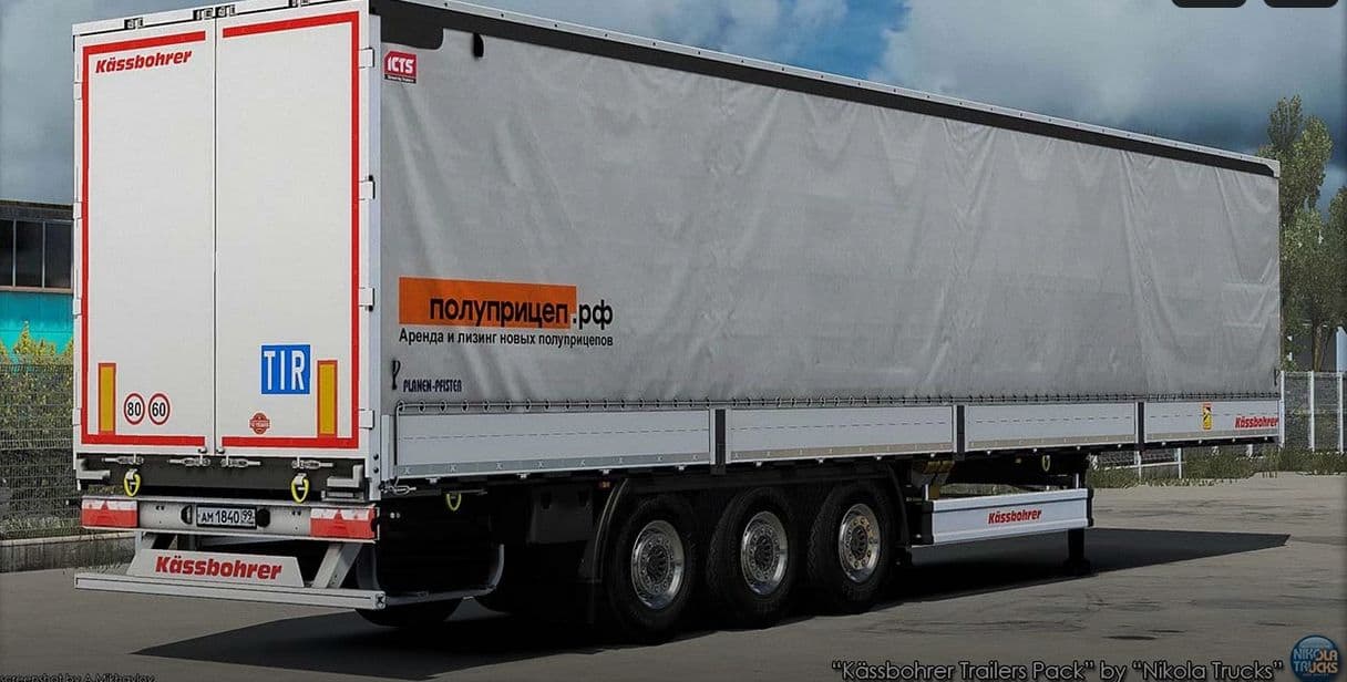 This mod is built on a highly detailed high-poly models developed by Max Bednov, kazan1234 & Valeriy Rusakov, which made it possible to realize the most realistic trailers in ETS 2. The models is full baked in AutoDesk 3D MAX in high resolution, has a 4K template for applying your own skins to the trailers.