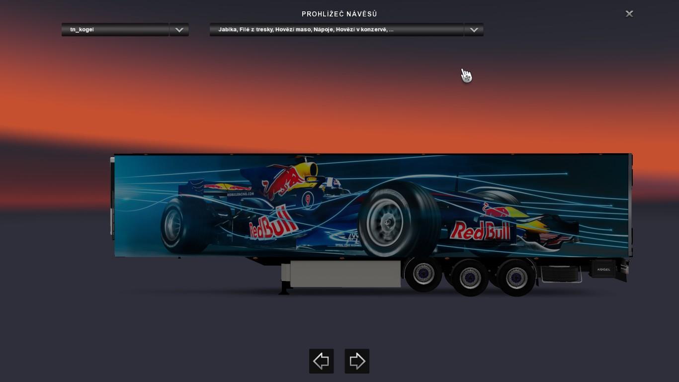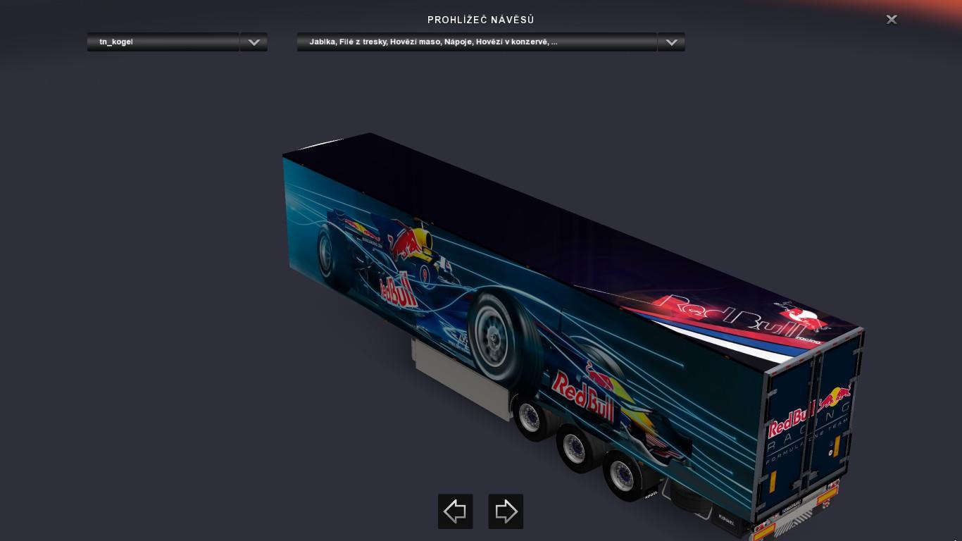 Kogel adds F1 Red Bull Racing Formula One Team skin to your trailers. At the same time, the kogel trailers enter traffic.